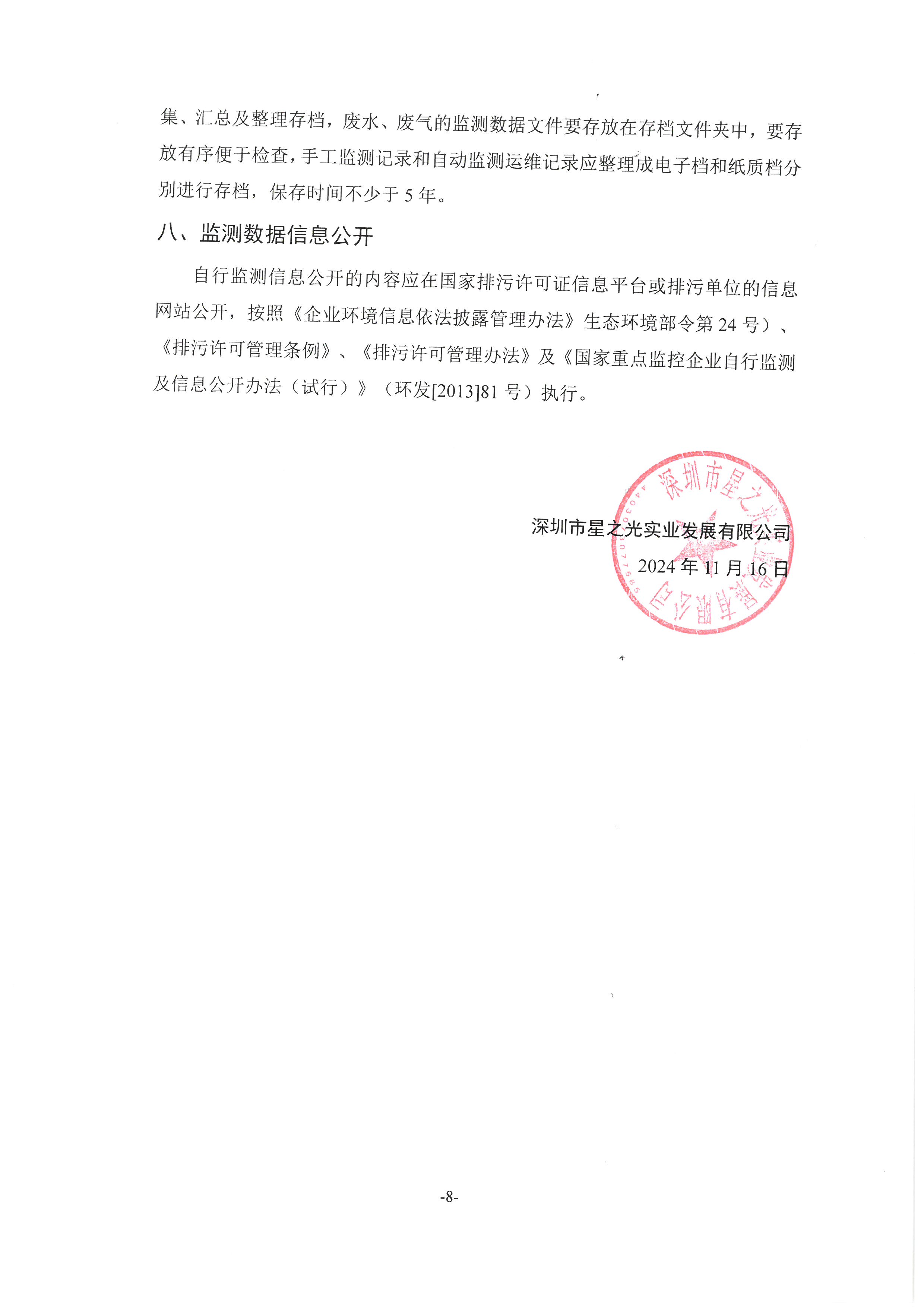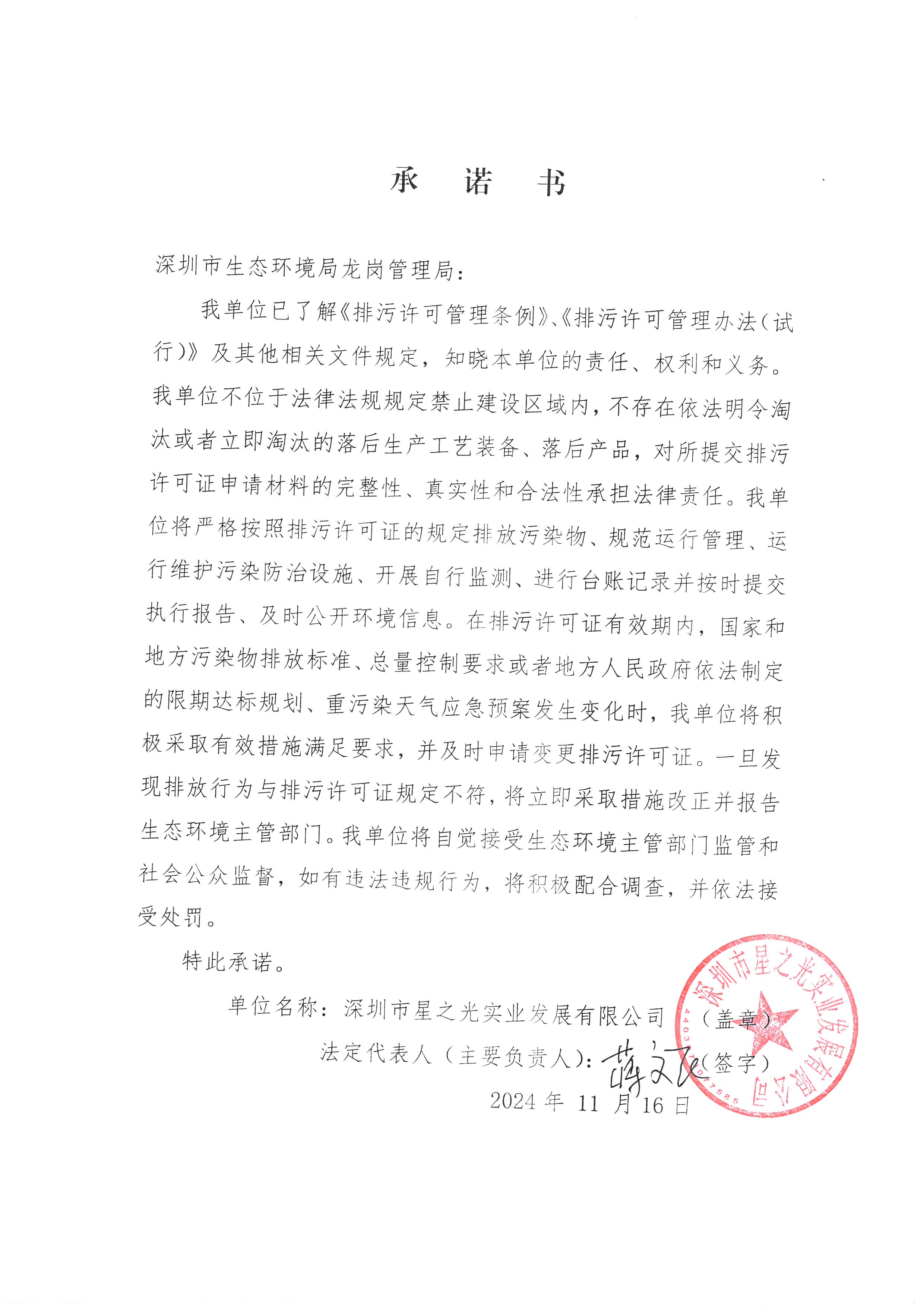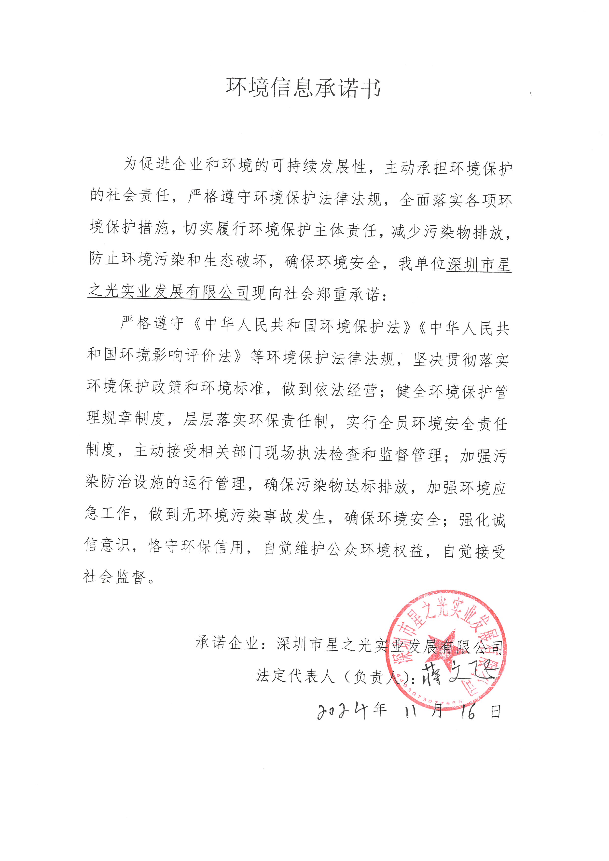 深圳市星之光实业发展有限公司环境信息公开